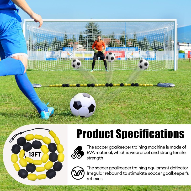 13 FT Single Line Goalkeeper Ball Deflector, Soccer Goalkeeper Training Equipment, Multiple Different Refraction Angles, Enhanced Reaction Time & Ball Control