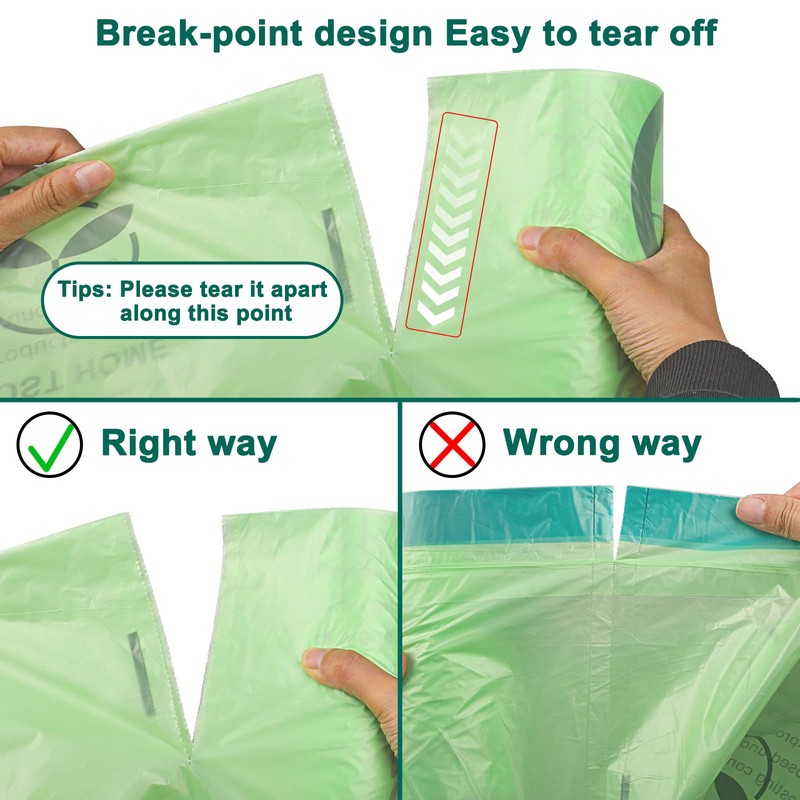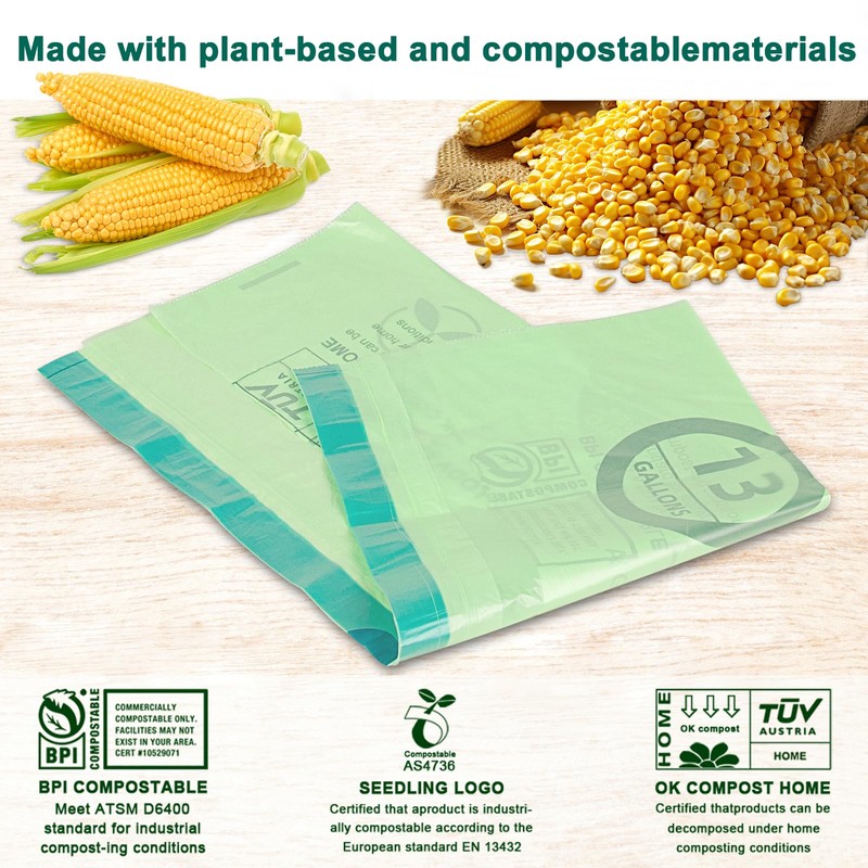 - Material: Compostable bags are made of plant starch (corn) material, the material is durable and not easy to tear.Replace harmful plastic kitchen trash bags with our green compostable trash bags to reduce environmental waste