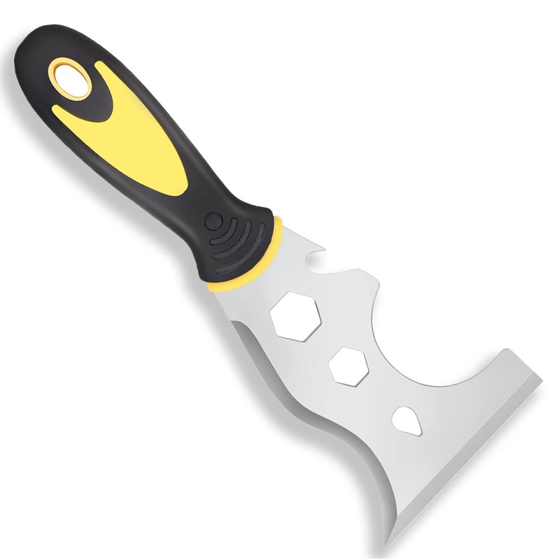 - 【Multi-function Putty Knife】 13 in 1 paint scraper can be used as straight scraper, curved scraper, chisel, screwdriver, nail puller, can opener, hammer, drum cleaner, box opener, wrench, etc. Scraper - painting and decorating tools replace multiple hand tools in the toolbox.