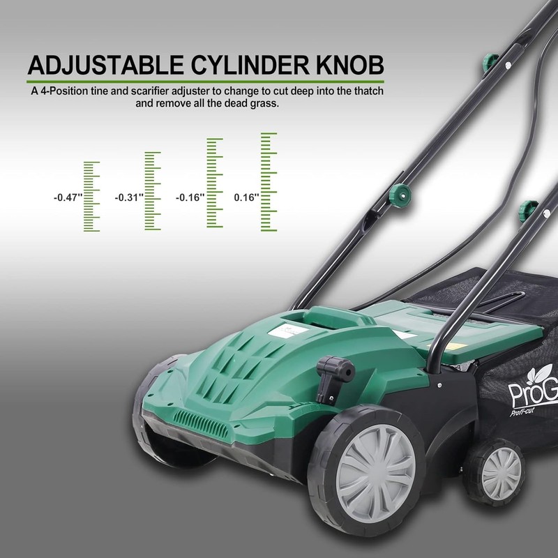 13-Inch 12 Amp 2-in-1 Electric Dethatcher and Scarifier with 31.7QT Removable Collection Bag, Lawn Dethatcher with 4-Position Depth Adjustment