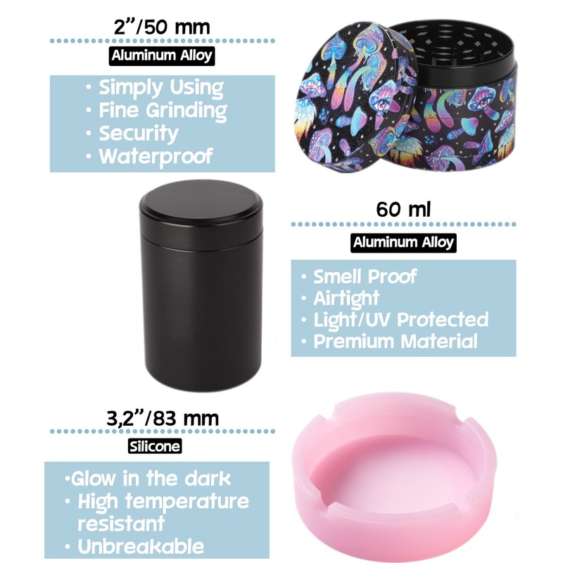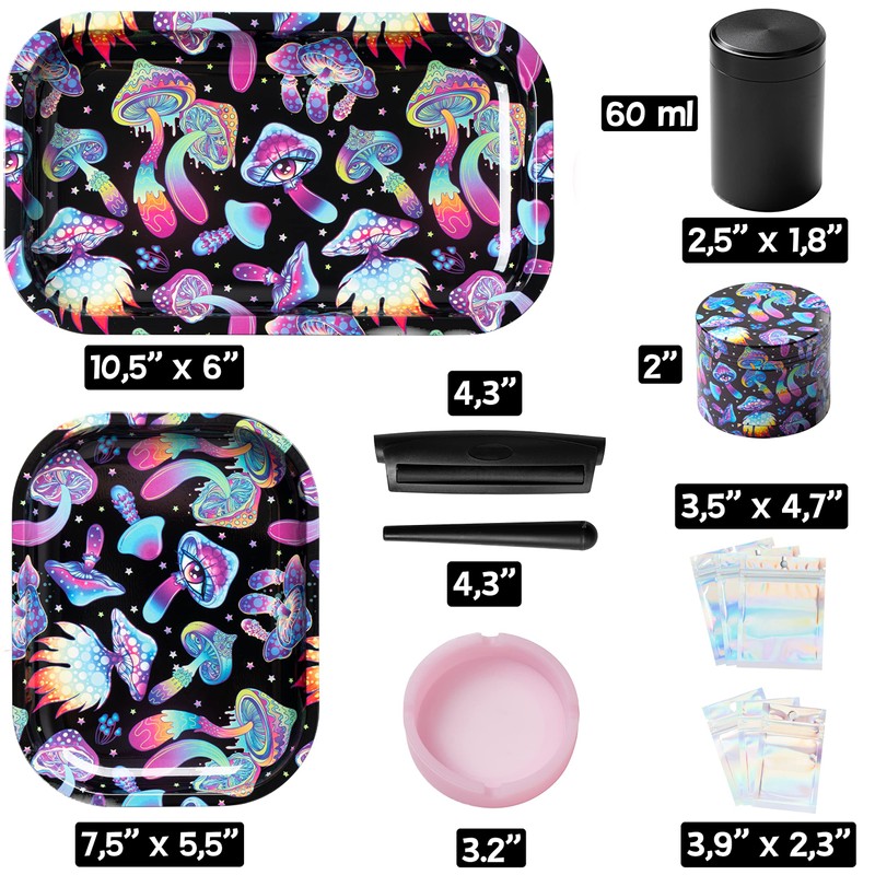 • [ Material ] - The trays are made of aluminum with trippy mushroom design printing.