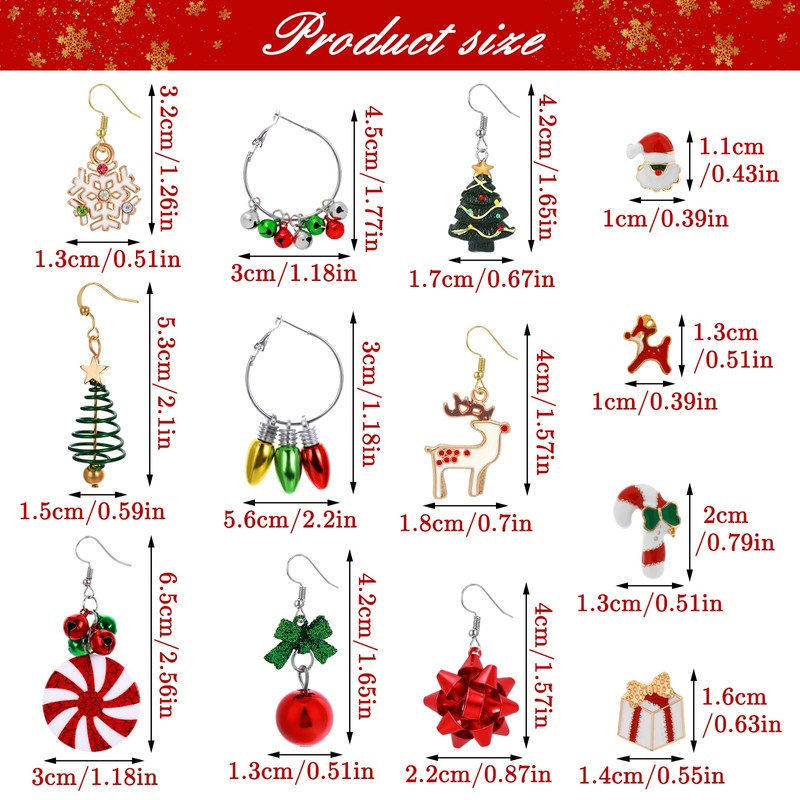 - Unique Christmas designs: Christmas earrings for women. You will receive 13 pairs of Christmas design earrings, including Christmas tree earrings, snowflake earrings, garland earrings and bell earrings, all of which can be easily combined with Christmas costumes for a heavy and feminine look, festive atmosphere thanks to cork earrings