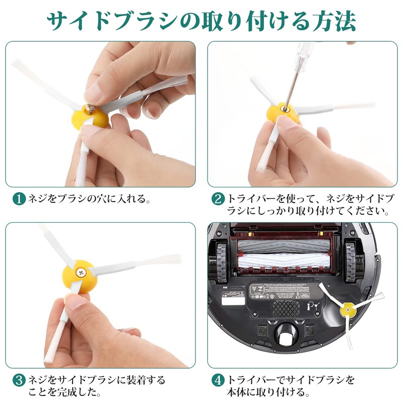 - Side brush: The side brush can be cleaned neatly in places where it is difficult to clean such as walls and corners. Even homes with small children can use it with confidence. Replace when the dirt gets stuck to the surface and spots or weaken the suction force