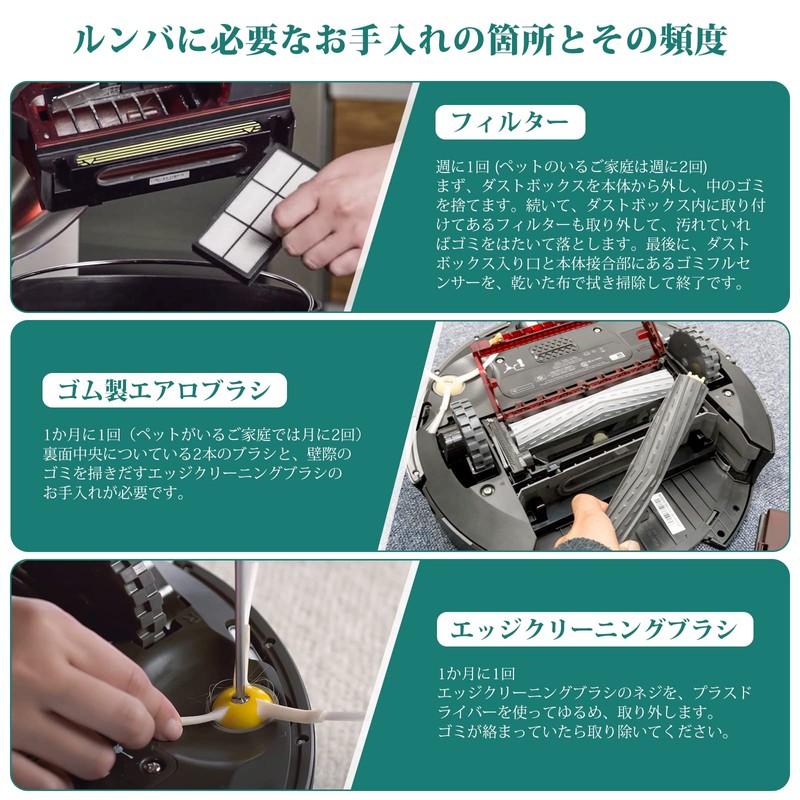 - Maintenance: The iRobot parts are easy to install and durable. If your roomba's cleaning capacity becomes weaker, replace the brush and filter to keep your vacuum cleaner. Varies depending on your vacuum use