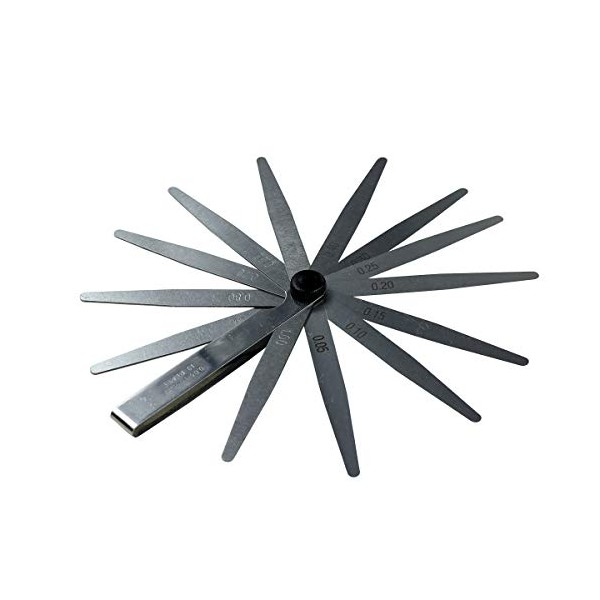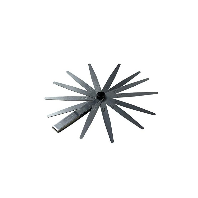 - Length: 100 mm, 13 measuring blades: 0.05 mm, 0.10 mm, 0.15 mm, 0.20 mm, 0.25 mm, 0.30 mm, 0.40 mm, 0.50 mm, 0.60 mm, 0.70 mm, 0.80 mm, 0.90 mm. 0 mm -- 1 .00mm