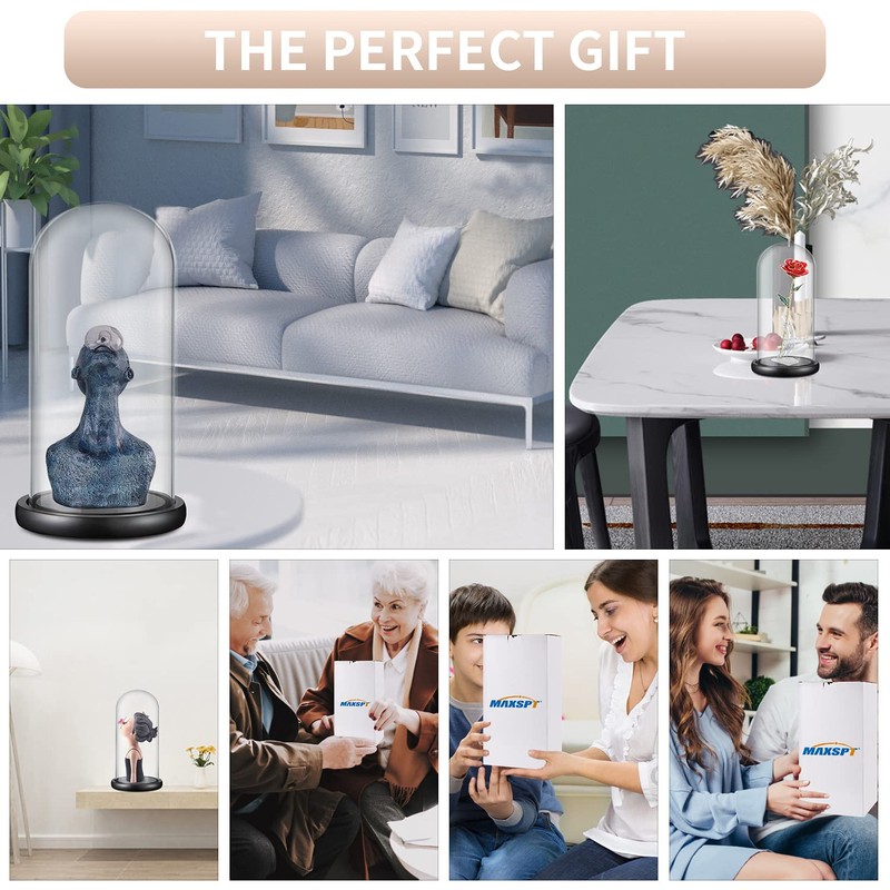 - Function - Easy to place on any shelf, mantle, desk or tabletop surface,Glass Cloche is for Gold Dipped Rose,Antique display,Figurine and much more showcase and protect.