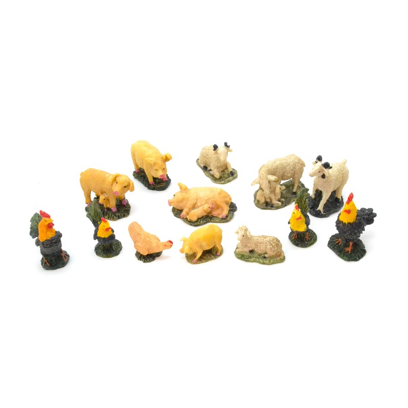13 x Chicken Rooster Chicken Sheep Rams Lambs Pigs and Piglets. Christmas Figurines 6 cm Set of Scene, Figures. Animals, Birth of Jesus. Kings. Crafts Nativity Scale Models