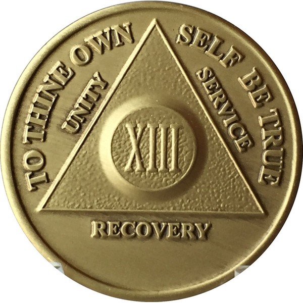 13 Year AA Medallion Traditional Bronze Raised Center Sobriety Chip