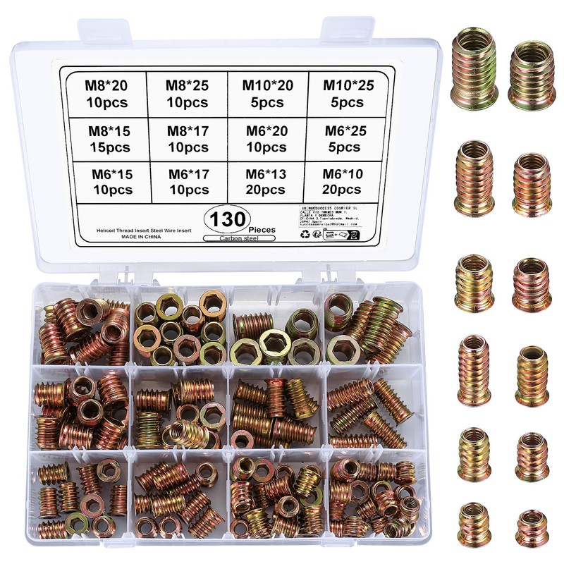 - You will get 130 pieces of threaded insert nuts in 12 sizes, enough for your daily use.