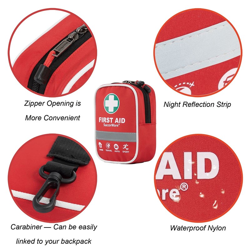 - WATERPROOF AND DURABLE - This first aid bag is designed to come with a red ripstop polyester nylon bag in addition to being waterproof. And it has a night reflection design that allows you to easily find it when the light is low. This can buy you time to stay calm and act in the event of an unexpected surprise.