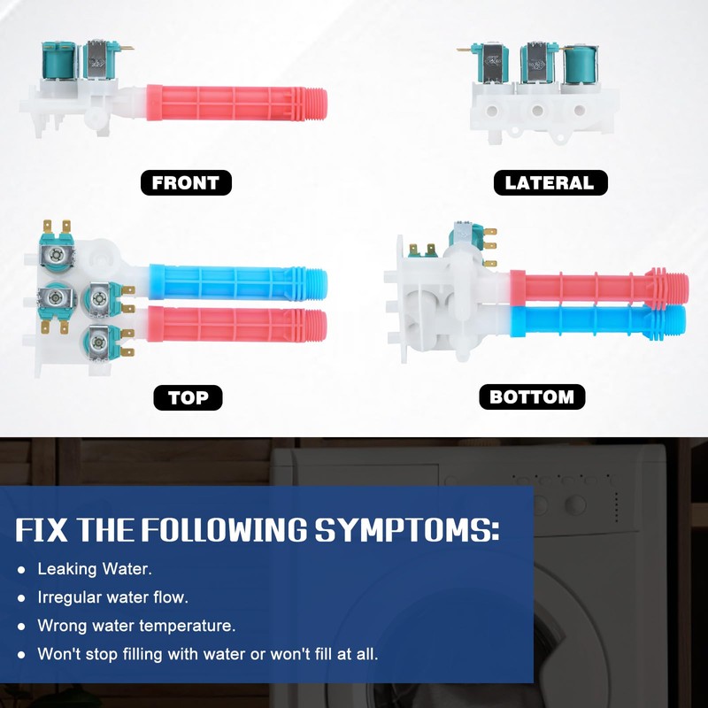 - 【FIX THE FOLLOWING SYMPTOMS】: Wrong water temperature; Abnormal water ingress in washer; Washer not running; Washer is very noisy; Washer water inlet valve leaking water.