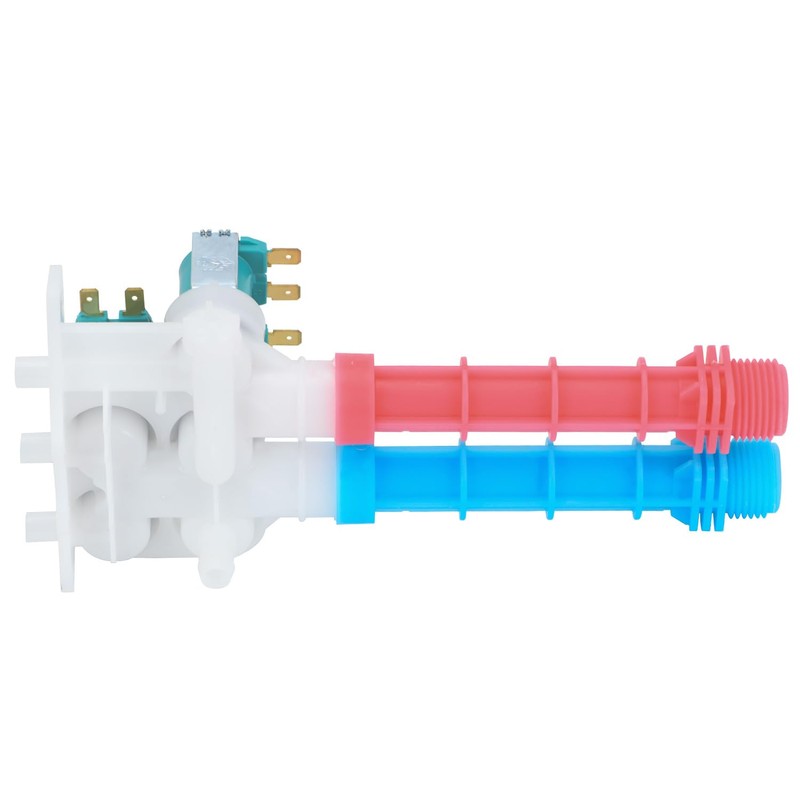 - 【FUNCTION】: This assembly controls the flow of hot and cold water into the machine, opening and closing as needed during the washing cycle, while filtering out impurities in the water,this assembly has 4 coil water valves.