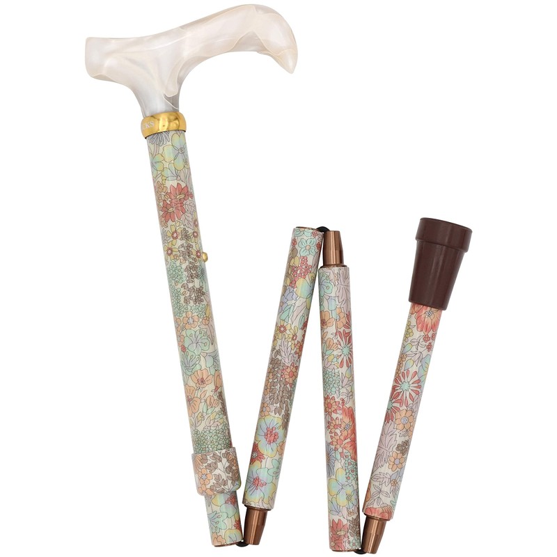 リバティプリントを纏った美しく、優しい折りたたみ杖(マーガレット・アニー) 女性用 軽量 おしゃれ 杖 ステッキ 【適応身長:約138〜165cm/レザー調ストラップ】