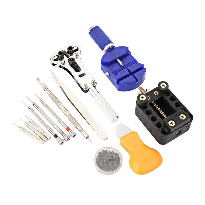 - 3 screwdrivers, 3 metal pin extractors and a professional case back opener base opener