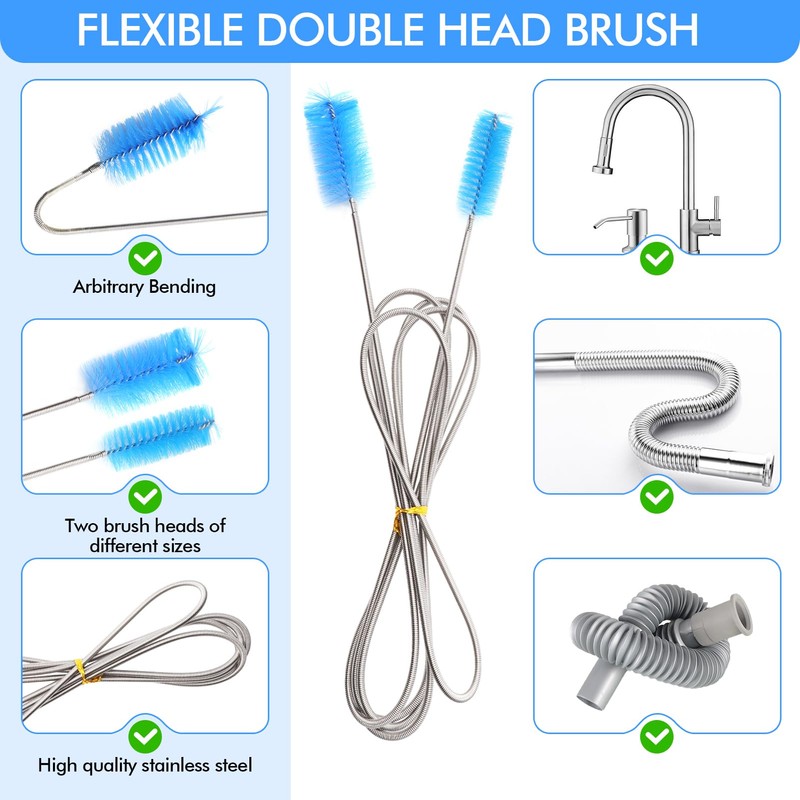 - [Flexible Double Head Brush] These double-ended hose cleaning brush is made of stainless steel, are durable, and have arbitrary bending, just need to move the brush back and forth slowly, can reach the u bend easily. Such as cleaning water pumps, filters, Glass pipes, connectors, and other hard to reach places.