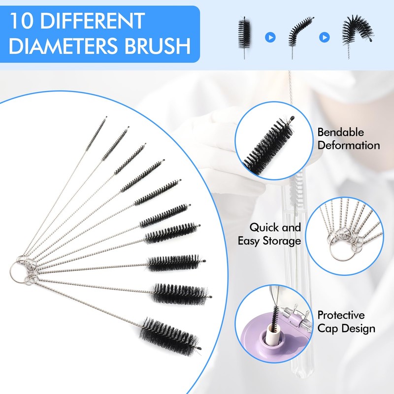 - [High Quality Material] The straight brush set is made of stainless steel, they are rustproof and durable for long-term use, and these brushes have a hole for easy hanging, making your home, or office more tidy. Moreover, 10pcs small cleaning brushes with bristles of different diameters and lengths, meet your daily needs.