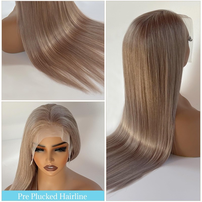- Long Straight Ash Blonde Wig Color, Material & Density: ash blonde wig human hair, also called milk tea ash blonde, is stunning and will bring you to the next level; 100% real raw human hair feels soft and smooth without shedding, can be curled and straightened; as shown in the picture, our 180% density ash blonde wig allows you to make many hairstyles and great for girls/women who like a natural & medium volume hair wigs