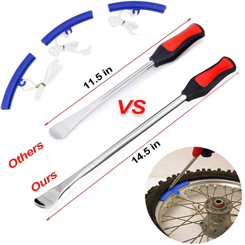 14.5"Tire Spoons Motorcycle Dirt Bike Tire Changing Tools Iron Set ,Tire Spoon Levers Tire Changer Kit for ATV Lawn Mower with Tire Spoons, Rim Protector, Valve Tool, Valve Caps and Valve Cores