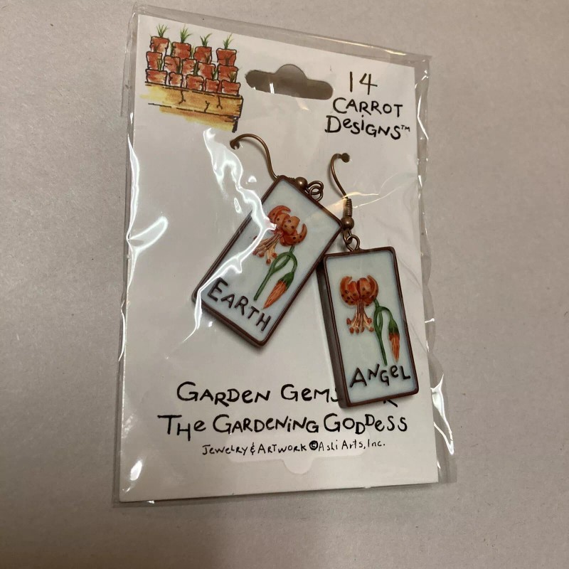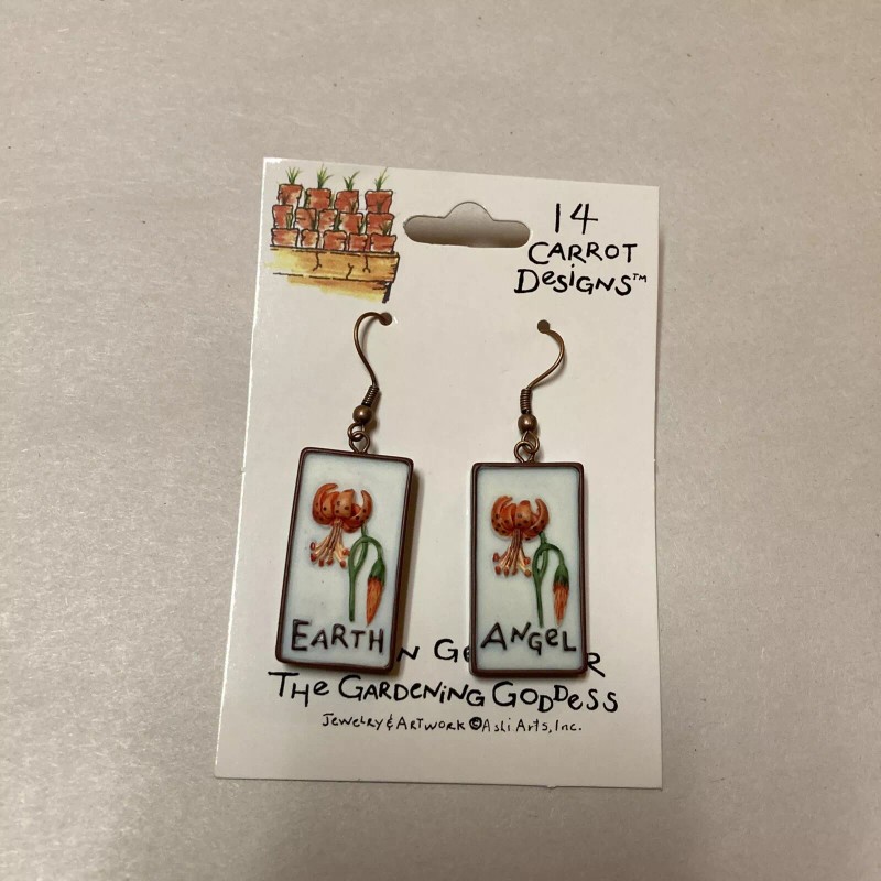 NWT Garden Earth Angel Pierced Earrings '14 Carrot Designs' Hand Painted Flower.