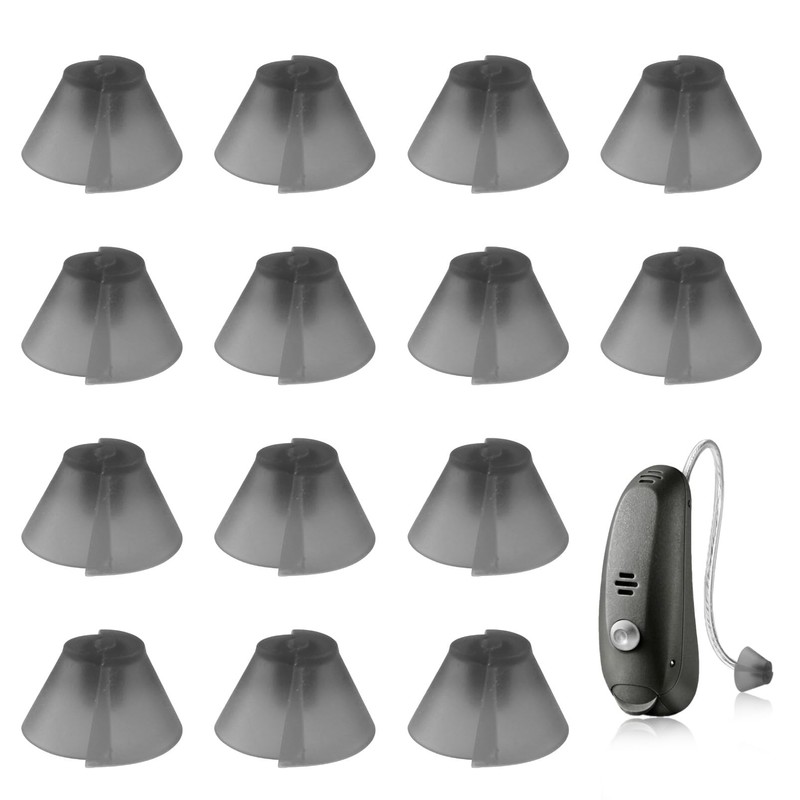 14 Counts Hearing Aid Tulip Domes Universal Replacement, Hearing Amplifier Ear Kit Tips Fit Standard Receiver BTE RIC, Dark Gray Split Ear Rub Piece Comfortable Perfect for Open Air