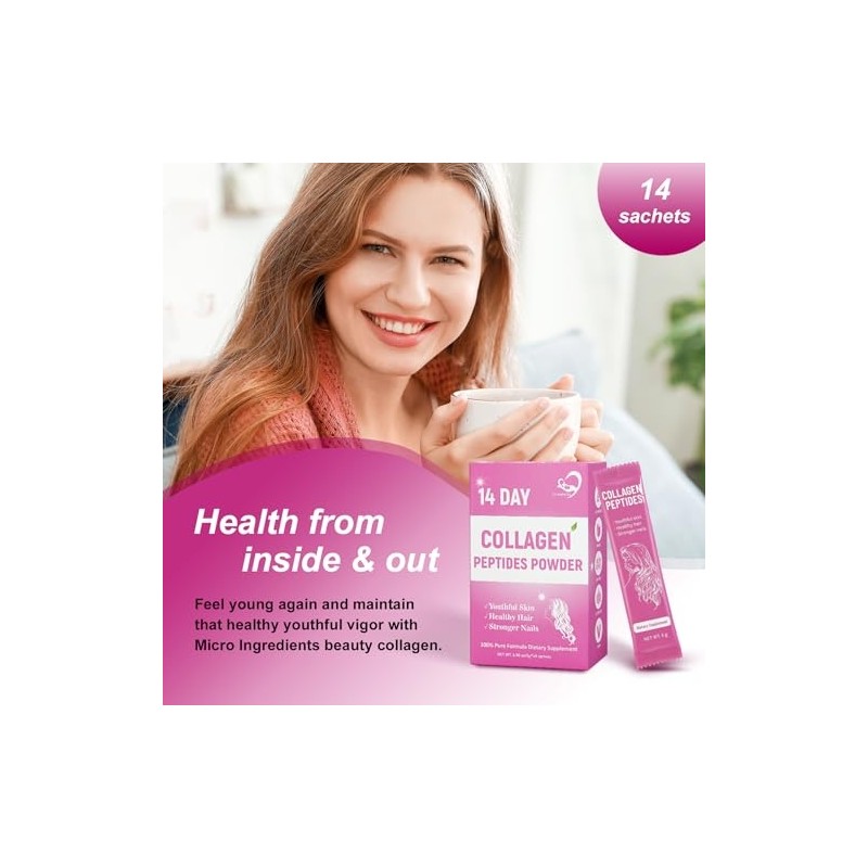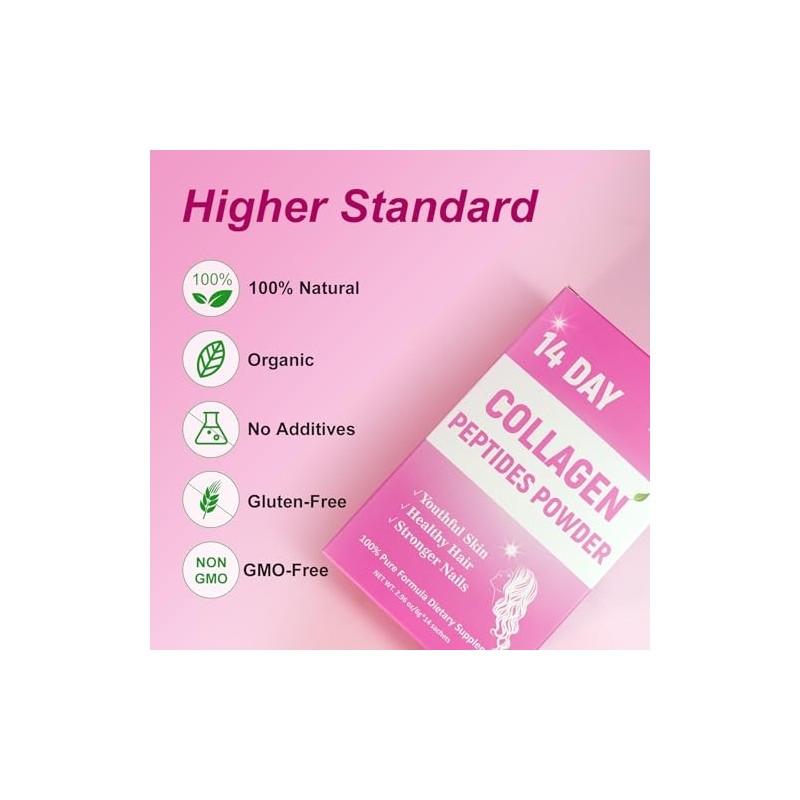 14 Day Collagen Peptides Powder, Collagen for Women Promotes Skin, Hair, Nail Health, Collagen Powder, Collagen Supplements Hydrolyzed Collagen Powder, Non-GMO