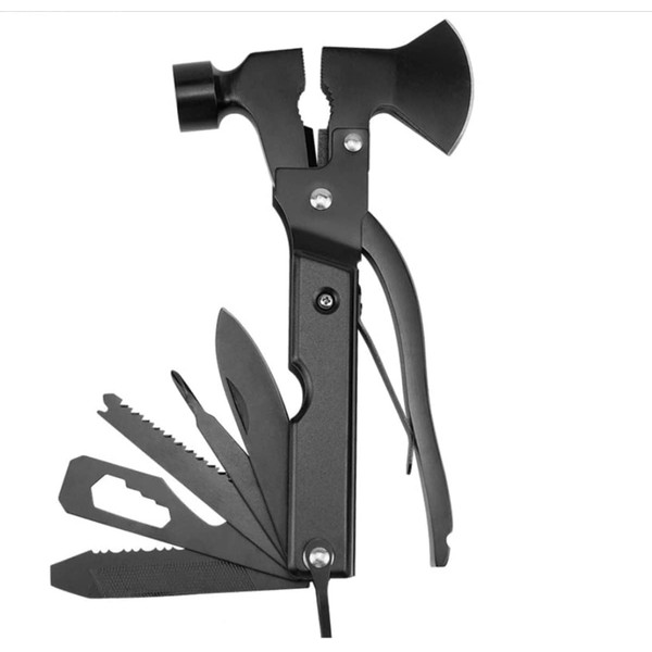 - ✅ 14 Functions in 1 Tool – Combines an axe, hammer, pliers, wire cutter, knife, saw, bottle opener, can opener, screwdrivers (flat/Phillips), file, wrenches, and more. Perfect for camping, emergencies, DIY, and outdoor adventures.