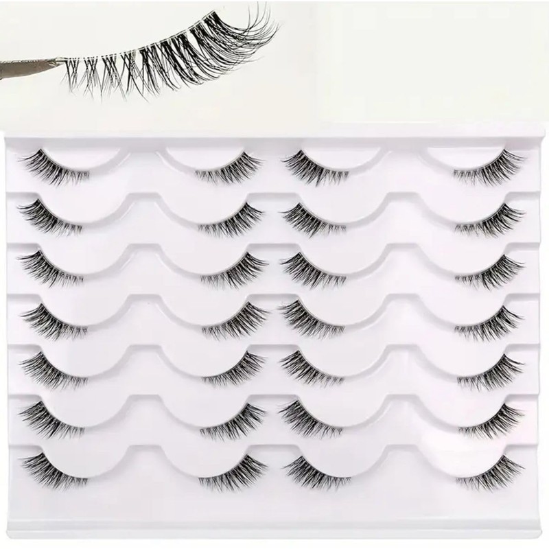 14 Pairs Wispy Cat Eye Half False Eyelashes – Natural Short Accent Lashes, Clear Band, Reusable Faux Lashes, Multi-Style Set for Beginners