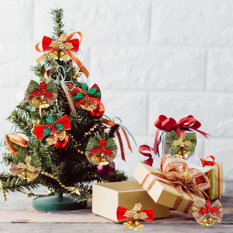 - These dainty little Christmas bow bells are a classic decoration for Christmas trees, Christmas wreaths and rattan at Christmas New Year parties.You can also use these mini bow bells to decorate your home, garden, patio, or even greeting card decoration, gift wrapping and pet decoration.