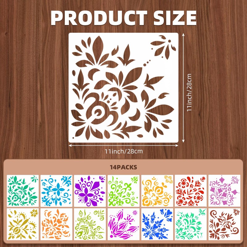 14 Pcs Diwali Rangoli Stencils 11"x11", Reusable Large Mandala Painting Templates Indian Traditional Festival Stencil Drawing on Wood, Floor, Wall, Fabric, DIY Craft (14 Style)
