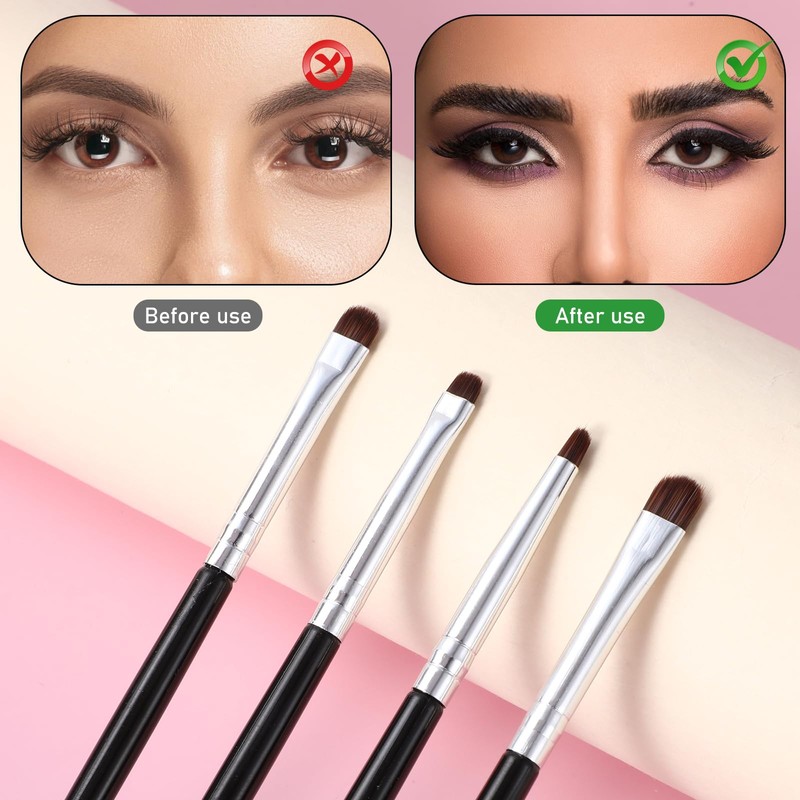 - [Create Professional Makeup Effects] The flat brush head of the eyeshadow makeup brushes fits the eye contour, and different widths are precisely adapted to different areas. The narrow brush head of the fluffy eyeshadow brush is used for eyeliner outline and detail modification, and the wide brush head is used for large-area coloring and smudge transition, easily achieving a natural gradient or delicate and sharp eye makeup effect