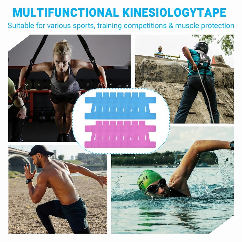 14 PCS Kinesiotapes, Precut Tapes für Rücken, Kinesiotapes Vorgeschnitten, Bequem und Atmungsaktiv, Reißfest und Effektiv Wasserdicht, Elastisch, Geeignet für Schultern (Himmelblau + Rosenrot)