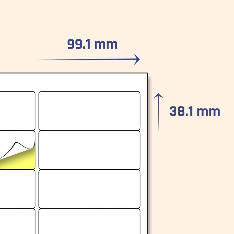 - A4 size (297 x 210 mm). 14 stickers per sheet (99.1 x 38.1 mm)