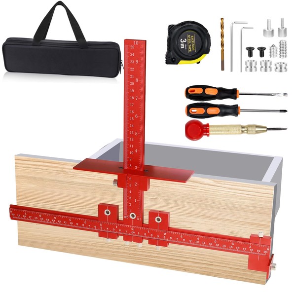 14-Piece Cabinet Hardware Jig Tool Set, Red Aluminum Alloy Cabinet Handle Jig...