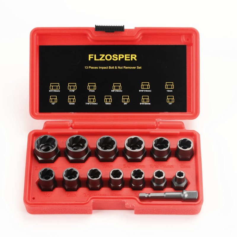 14 Piece Nut Twister Set Nut Extractor Socket Set Impact Bolt & Nut Remover Set Nut Removal Twist Socket Crushed Bolt Screw Bolt Box
