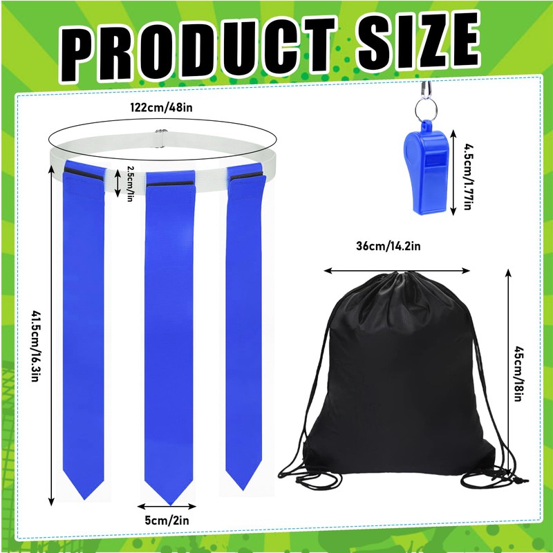 - Product Size: the waistband of the flag football set youth measures approximately 0.98 inches/ 2.5 cm and is adjustable up to 48 inches/ 122 cm, the flag measures approximately 2 x 16.3 inches/ 5 x 41.5 cm, the position of the flag on the waistband is adjustable, the undershirt is an even size and can be applied by both youth and adults