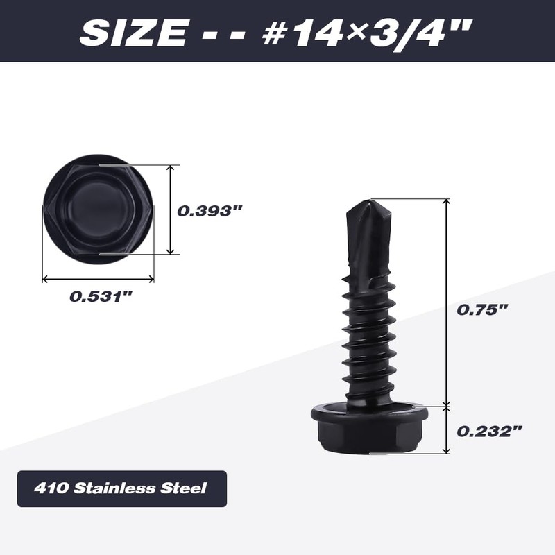 - Thread Size: #14; Screw Legnth: 3/4 inch (19mm), measured from below the head to the tip of the drill point
