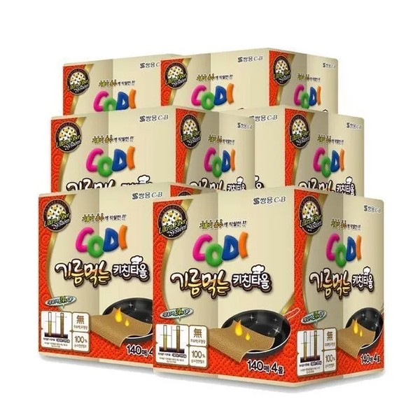 코디 기름먹는 키친타올 140매 4롤 X 6개 두루마리 총24롤 Cody Oil-Absorbing Kitchen Towel 140 Sheets 4 Rolls X 6 Packs Total 24 Rolls