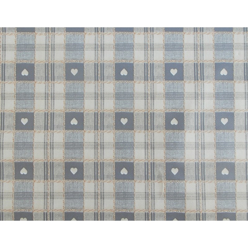 140x140cm SQUARE PVC/VINYL TABLECLOTH - GREY & CREAM CHECK WITH HEARTS