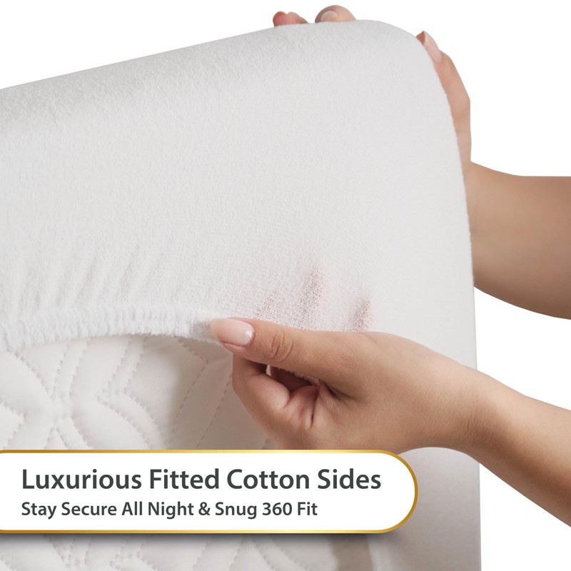- PURE COTTON: This pure cotton top mattress protector fits 120x60cm mattresses with deep sides skirts ensures snug fit.