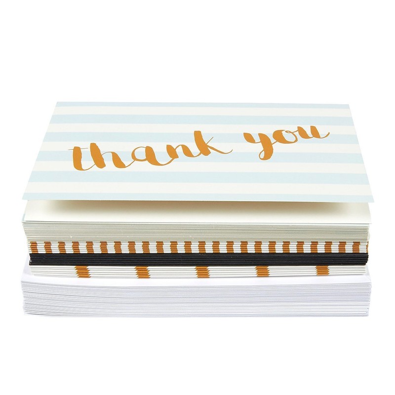 - Thank You Cards with Envelopes Set: This stationery bulk pack contains blue and gold gratitude note cards, 144 thank you notes and 144 corresponding white envelopes