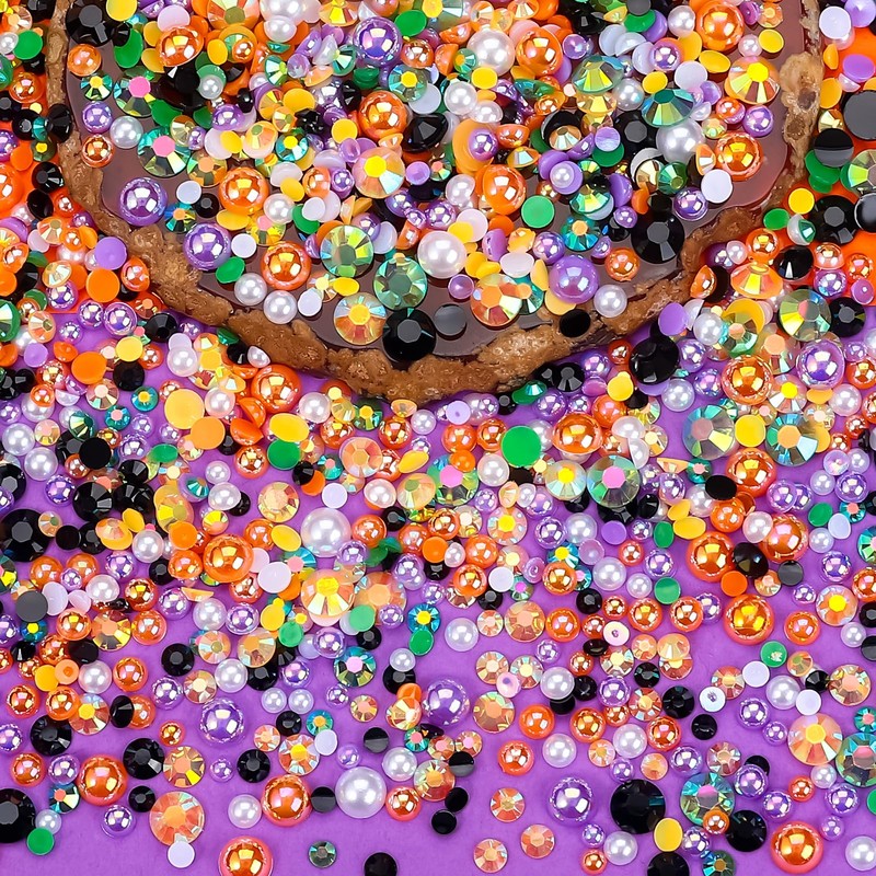 - DIY Halloween Decorations:The flatback half pearl rhinestones involves 4 sizes (3/4/5/6 mm)Yellow|Orange|Purple|Green|Black|White. Pearls rhinestones can fulfill your DIY more Halloween decoration in various scenarios, such as Halloween Present,halloween exquisite crafts,family and friends DIY halloween crafting activities (embellishing your halloween hat,sunglass,shoes, tumblers, phone cases, bags, etc.) and shining body makeup for Halloween parties