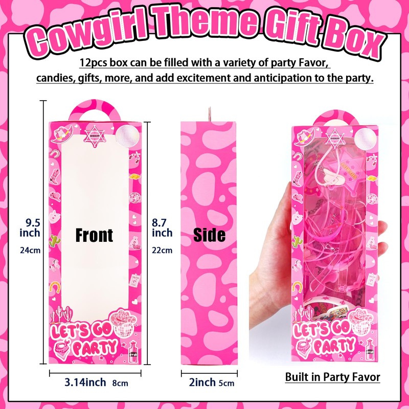 - 【Innovative Design】This pink cowgirl-themed favors gift set is a massive hit with girls and women, featuring a "Western cowgirl" theme that embodies the spirit of bravery, adventure, and confidence. The cowgirl-themed party gift boxes are especially charming, serving as the perfect storage solution for these goodies. With a clear front window, they beautifully showcase the contents—ideal for sharing with friends and spreading the joy. A carnival essential, don’t miss out!