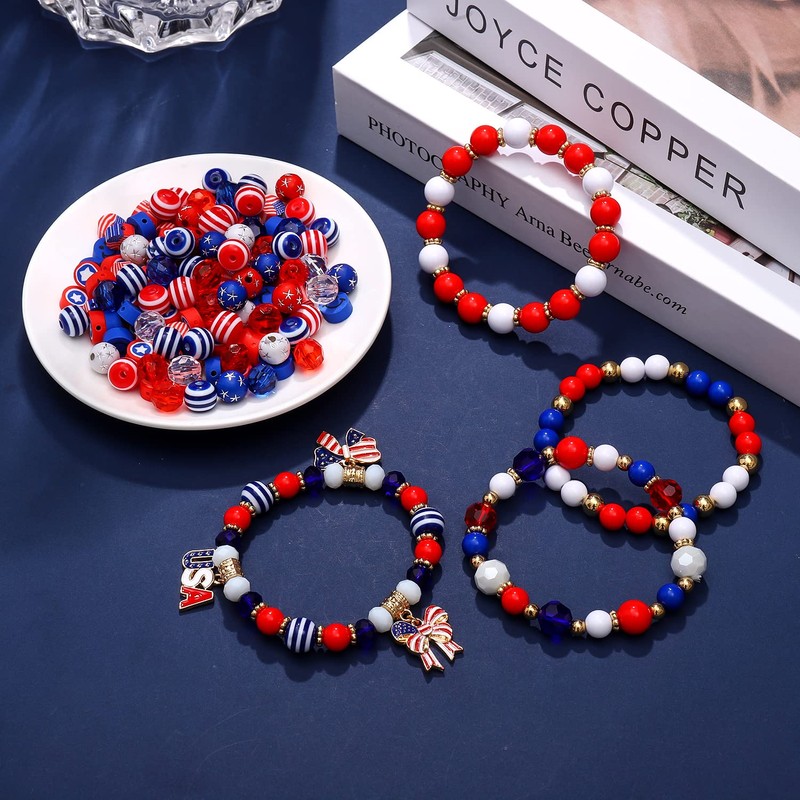 - ★Cuentas temáticas del Día de la Independencia★ Estas cuentas del 4 de julio para hacer joyas están diseñadas en colores y patrones clásicos de la bandera de Estados Unidos, es decir, blanco, azul y rojo, que son brillantes y en línea con el tema del 4 de julio. Son perfectas para el Día de los Caídos y el Día de la Independencia para expresar gratitud a soldados y países.