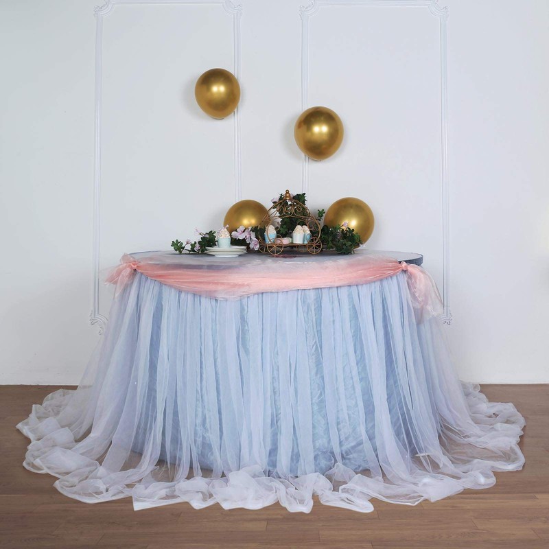 Perfect to add texture and dimension to your banquet tables, dessert tables, cake tables and party tables, these lush single layered tulle table skirts will transform your plain tables and tablescapes into luxurious banquets.