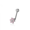 14GA ASTM F-136 Implant Grade Titanium Internally Threaded CZ Crystal Flower End VCH Piercing L-Bend Barbell (Silver Tone/Pink)
