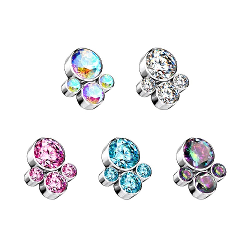 14GA G23 Implant Grade Titanium Internally Threaded CZ Crystal Paw Print Dermal Anchor Top (Aurora Borealis)