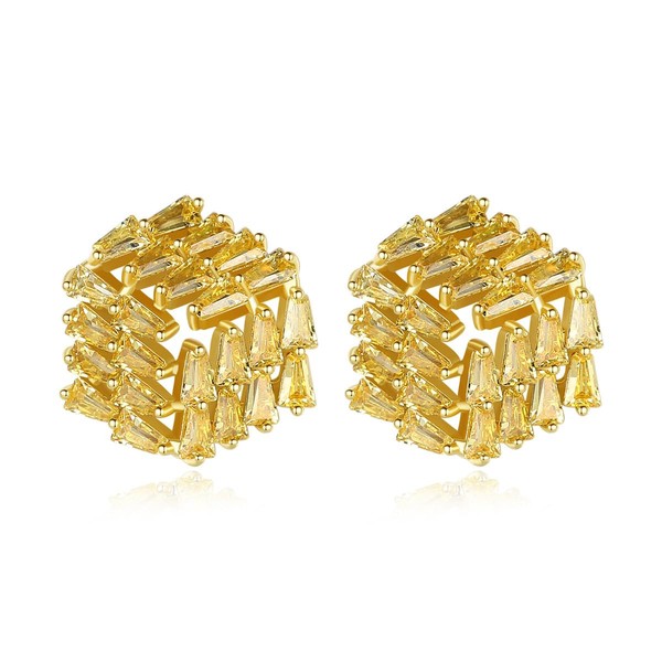 14K Gold Hexagon Earrings, Step-Cut Moissanite Geometric Gala Jewelry for Women (Yellow,14K)
