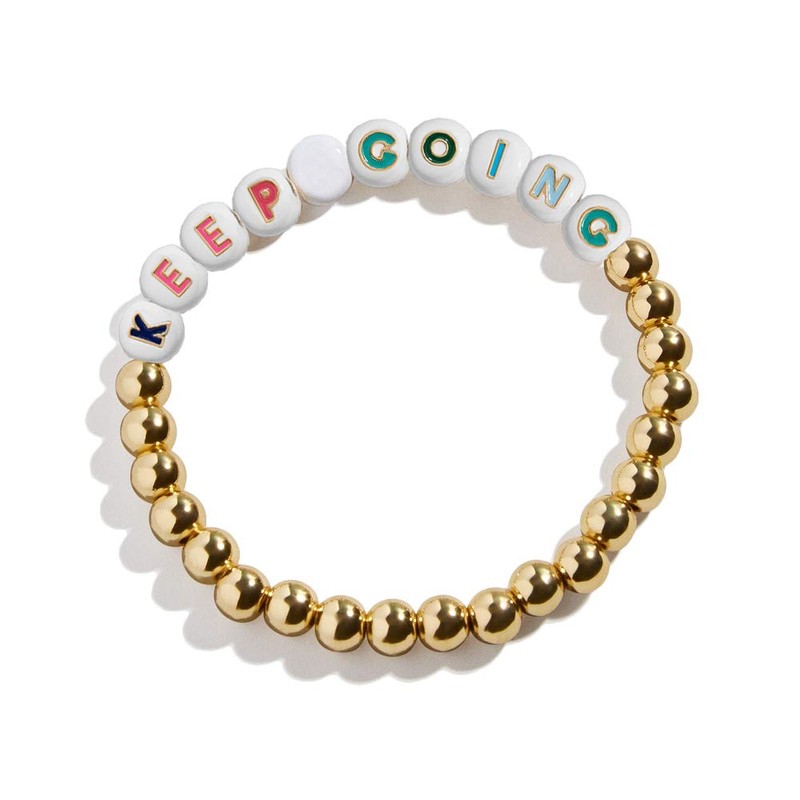 14K Gold Plated Beaded Bracelets Letter Stretch Dainty Stackable Bracelet for Women, one size, Metal, no gemstone