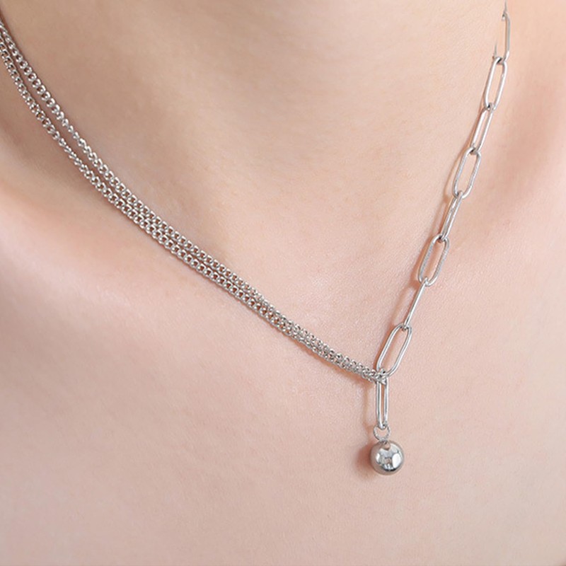 14K Gold Plated Curb Paperclip Box Sphere Bead Snake and Figaro Chain Adjustable Necklace for Women Gift Silver