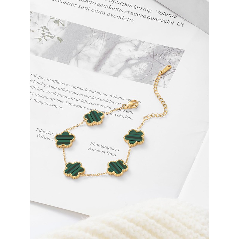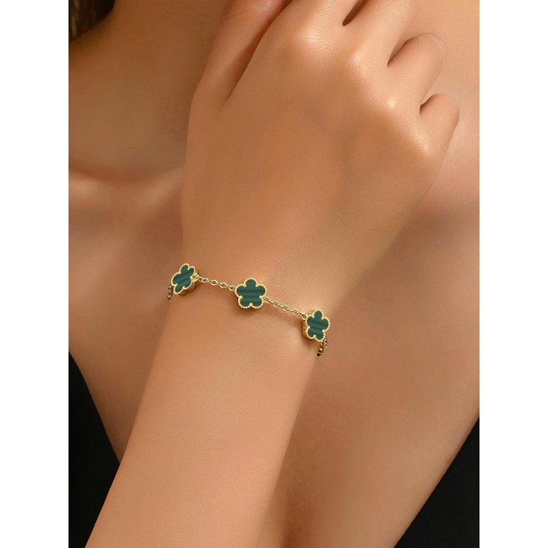 14K Gold Plated Dainty Four Leaf Clover Dot Bracelets for Women Lucky Flower Jewelry (Green Stripe-14K Gold Plated)
